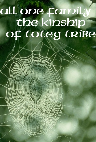 What is most important to us in Toteg Tribe as we define ourselves, is the close-knit, familial feel of the Tribe, and the deep respect and interest with which members regard one another and one another's journeys of spirit. The feeling of membership in Toteg Tribe differs from that of other groups, simply because we are not bound together by a doctrine, or ritual structure, or lineage, or tradition, or Book of Shadows, but by our free will and choice, and the permutations of sharing in that context are endlessly interesting. We hope readers of this essay who may feel that "hunch" or drawing of Spirit might be encouraged to investigate and see whether you might like to be part of our family.